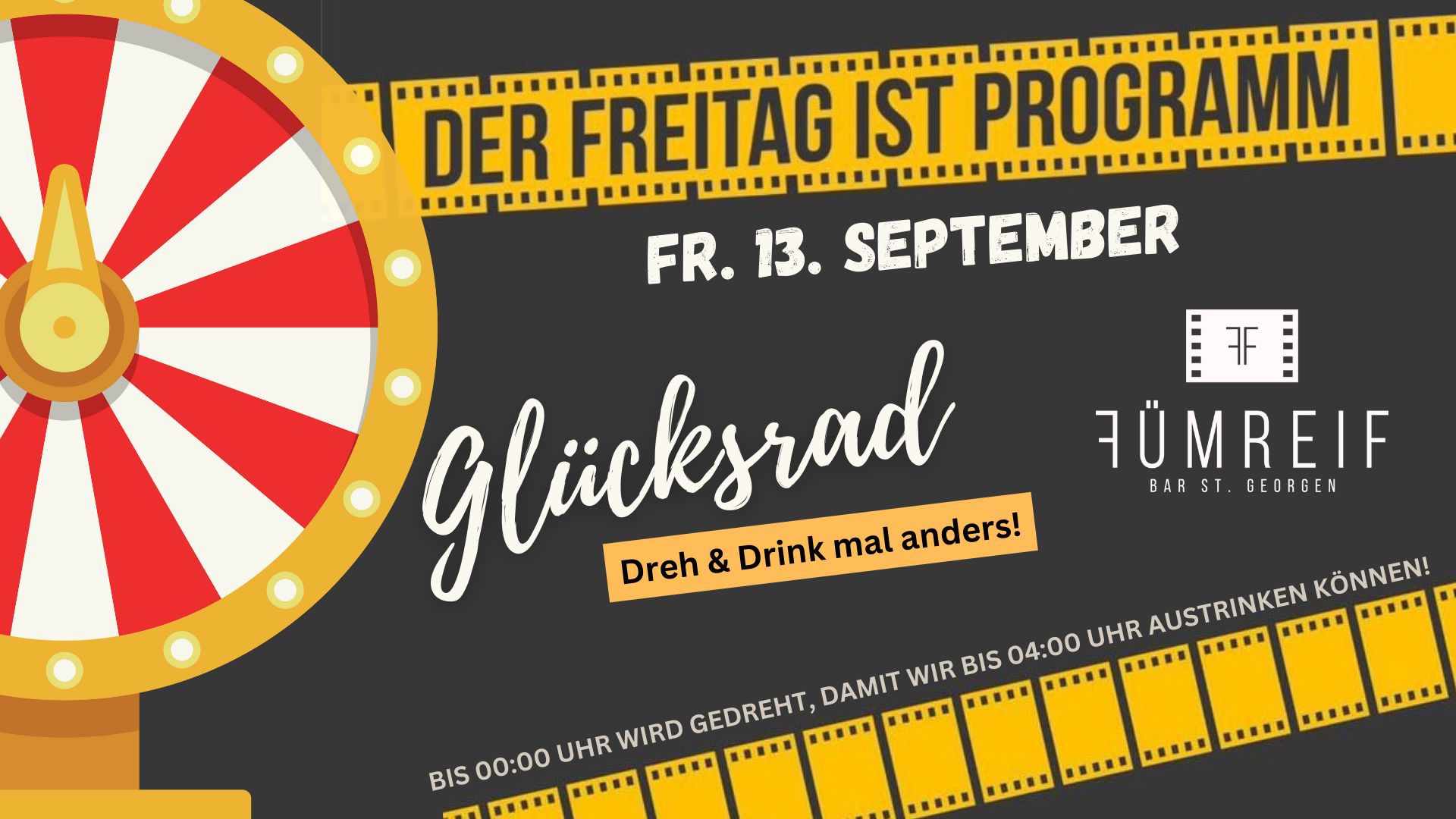 Versucht euer Glück uns sichert euch Getränke & Goodies am Fümreif-Glücksrad.