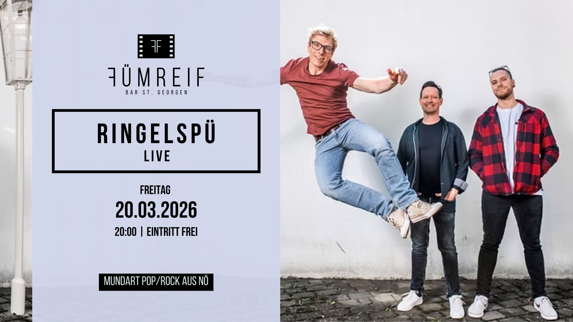 Unser nächstes FÜMive-Konzert bringt Mundart Pop/Rock aus Niederösterreich nach St. Georgen. Die Songs von Ringelspü erzählen Geschichten aus dem Leben – mal ernst, mal leicht, immer echt.
